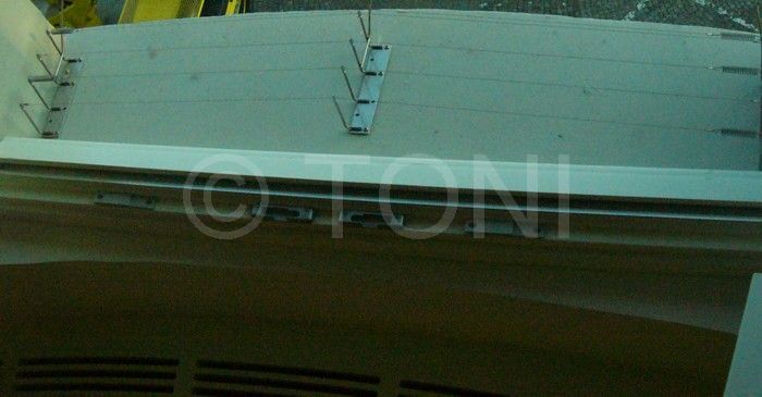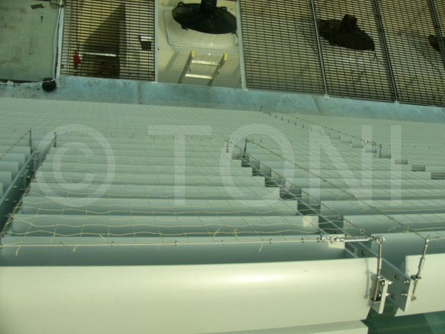 In front of the slat construction we stretched PE netting over the whole roof to prevent birds from sitting between the slats. The whole rear construction of the netting was in stainless steel.