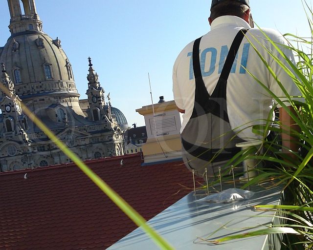 Pigeons infested the inner courtyard of a new building opposite the famous Church of Our Lady in Dresden. Due to the difficult access we installed the netting using industrial climbing technology.