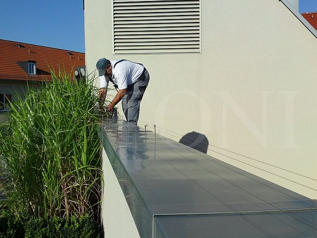 Pigeons like to populate city centres. This was also the case in the centre of Dresden, where we protected the parapets of a new building opposite the Church of our Lady with several rows of stainless steel wire system.