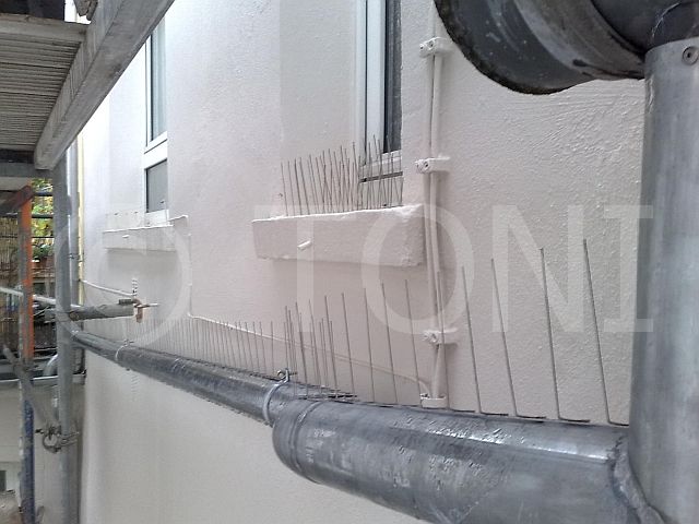 Stainless steel spikes were installed on pilaster strips and guttering.