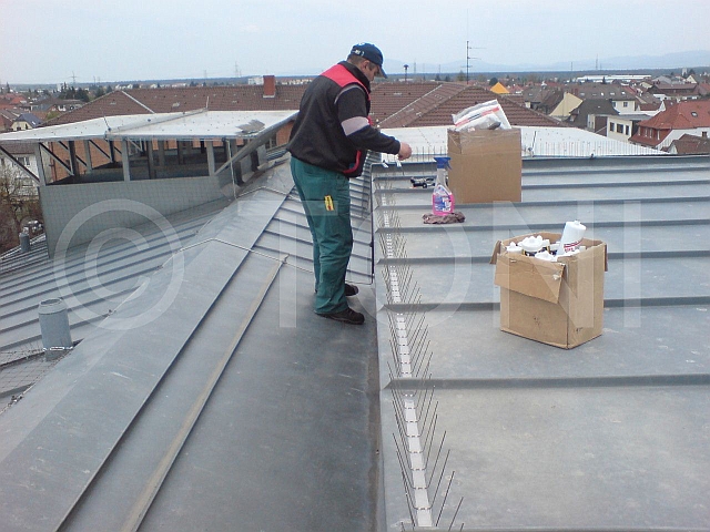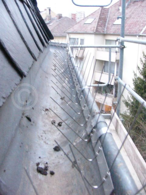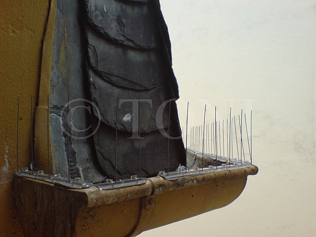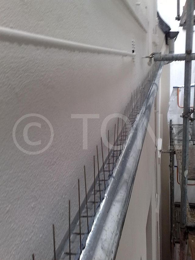 On other ledges and gutters we have used stainless steel spikes to protect them.