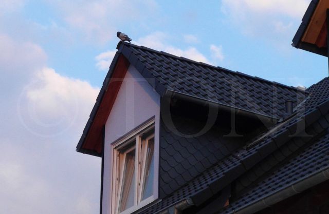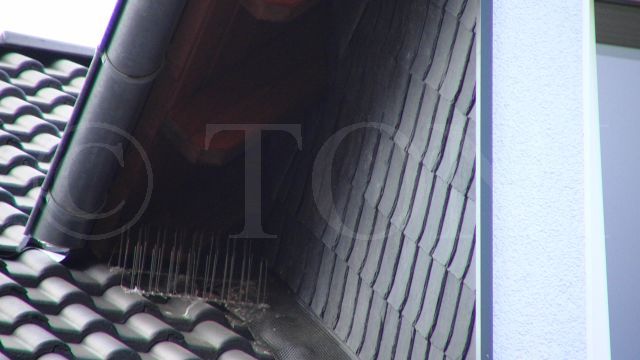 At this private home in Frankfurt, pigeons were sitting predominantly on the gutters and roof ridges. Although spikes have been installed during the construction of the house under the eaves of the gables, pigeons still found a way for breeding.