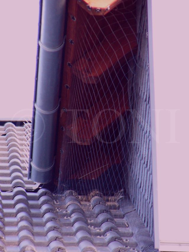 The netting is strectched between the guttering and house walls. By using PE Antec netting with bonding we were able to avoid boring special dowels through the insulation. A major advance, due to which time was saved and costs were lower to the client.