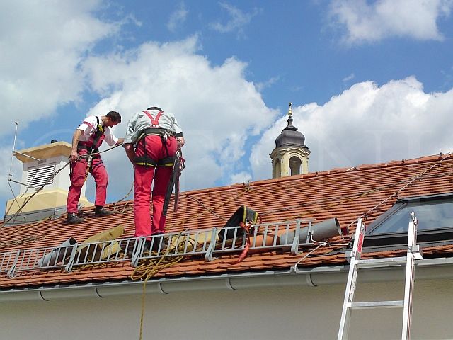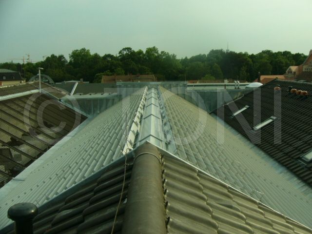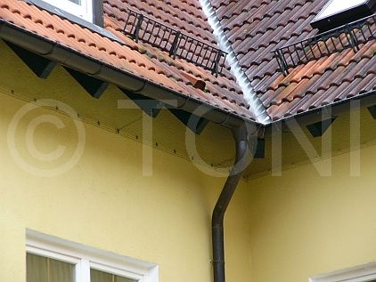 In this case, we have protected the gutters with special stainless steel spikes and the ridges with a wire system, which allows a very low-key solution. For the eaves of the gables, we have used our netting, which we glued directly on the tiles. The plastic holders for the netting were also coated black in order to make them as unvisible as possible. Furthermore, we have cleaned and disinfected the spots of pigeon droppings on this building.
