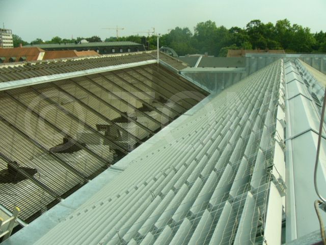 We protected the windows of a large shopping centre in Regensburg with a three- and five row stainless steel wire system. In particular, the full protection of the windows (five rows) prevents the pigeons from nesting on the window sills.
