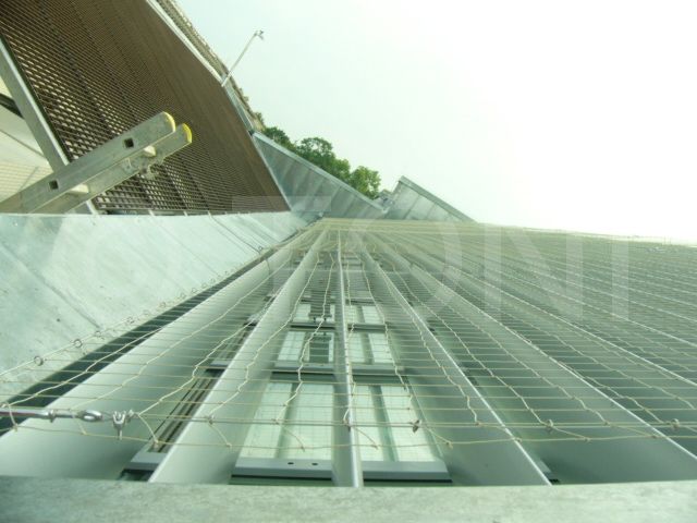 Bonding the netting also proved itself here. A steel cable frame attachment would have been very complex as the facade also functions as insulation.