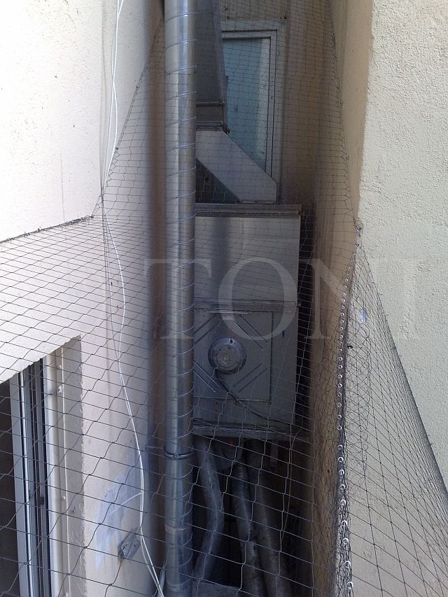 Netting is often the least favoured choice for balconies. It provides 100% protection against pigeons, but total netting is not everyman’s first choice. We can provide some help with hinged frames.