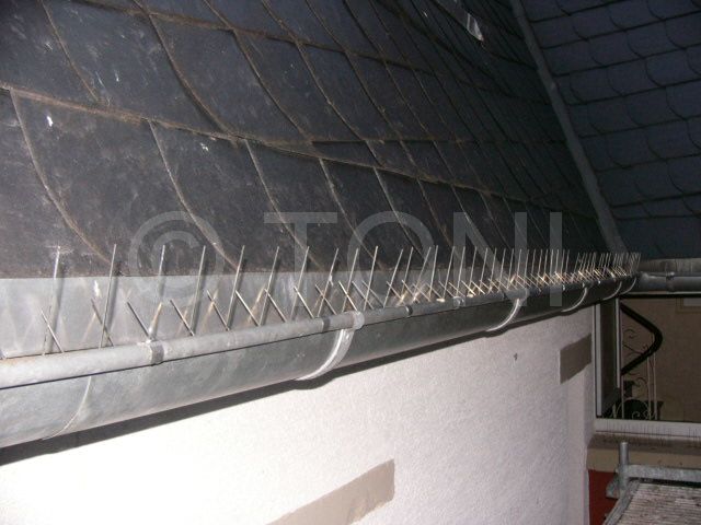 Guttering is a bird favourite. Special spikes helped here. These went so far into the recess that the birds could no longer nest in the guttering.
