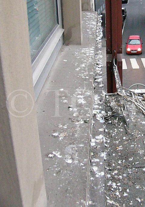 The window sills of a doctor’s practice in the Frankfurt city centre were heavily soiled by pigeons.