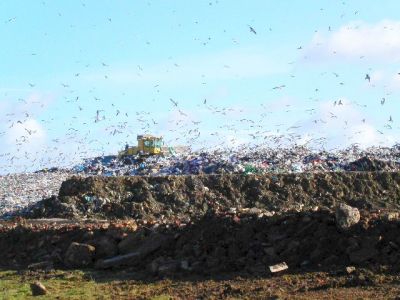 Birds are attracted from food waste and using landfills as residence and nesting place.