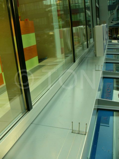 We installed the TAPO profile electrical system on the glass roof to prevent this. The light boxes of the advertising were connected to the electrical supply.