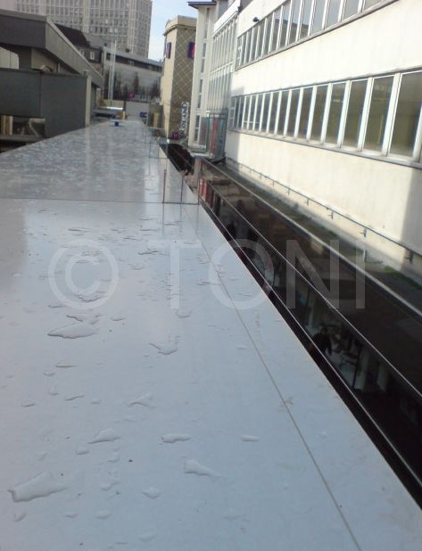 On one of the largest warehouses in Europe there was heavy contamination caused by large birds roosting on the parapets.