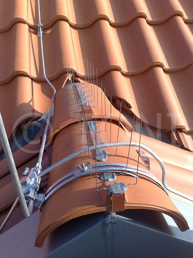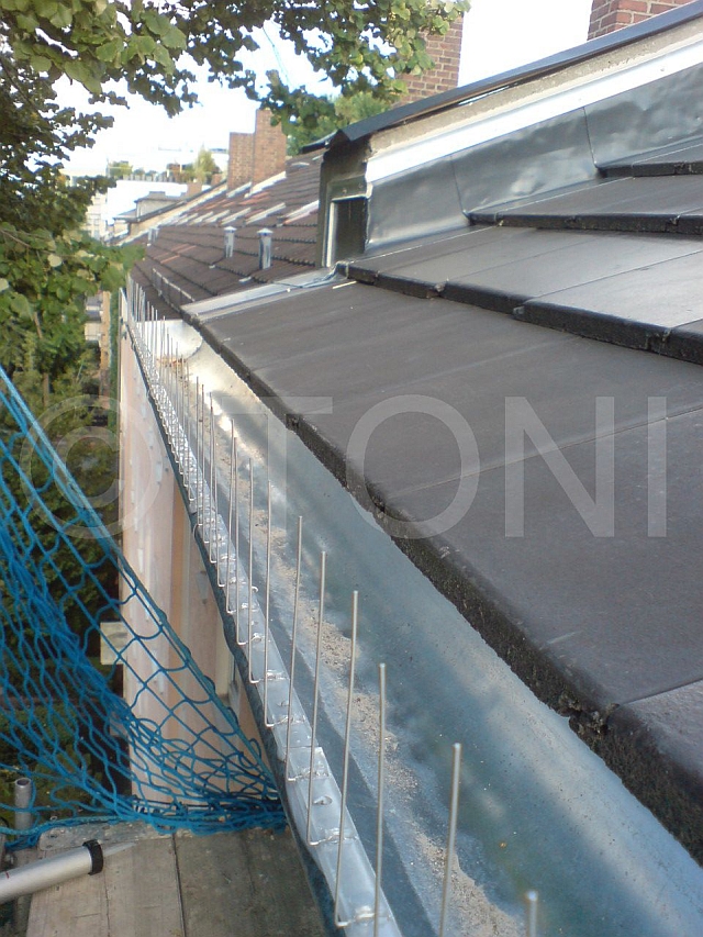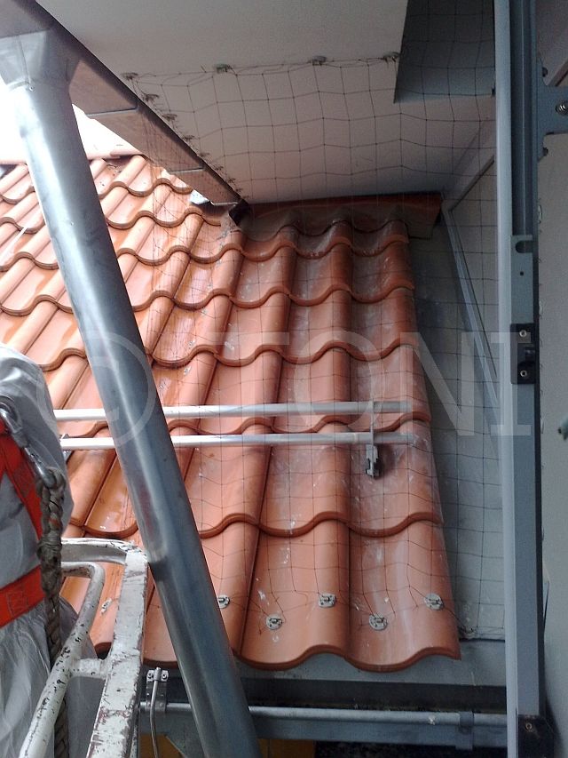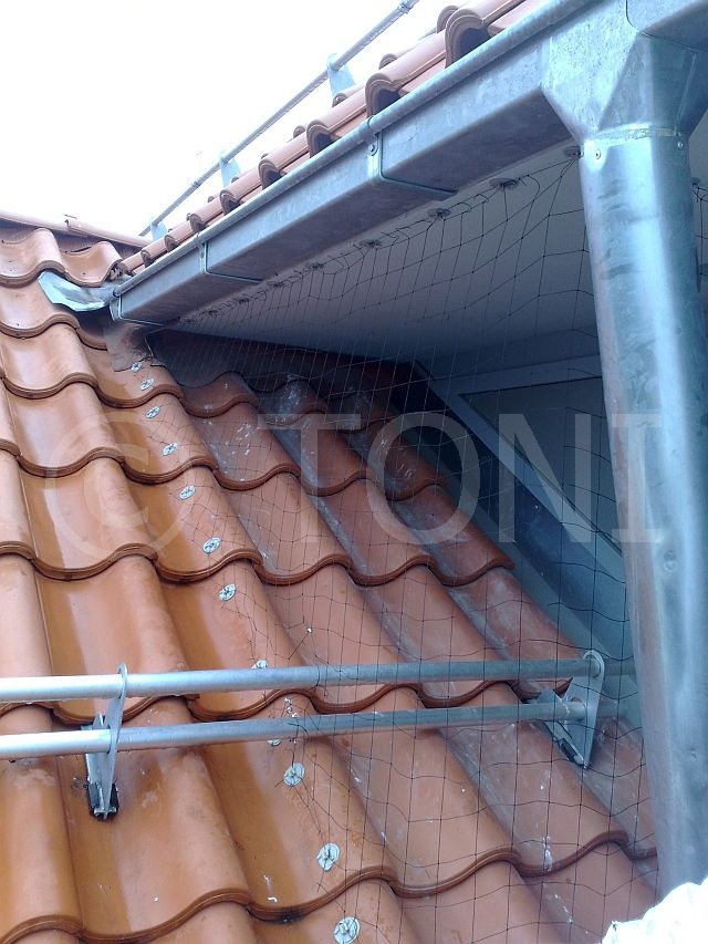 Beneath the roof pigeons also roosted directly on the tiles, since this place is best sheltered from the wind. We have installed PE-netting Antec, glueing it directly on the tiles.