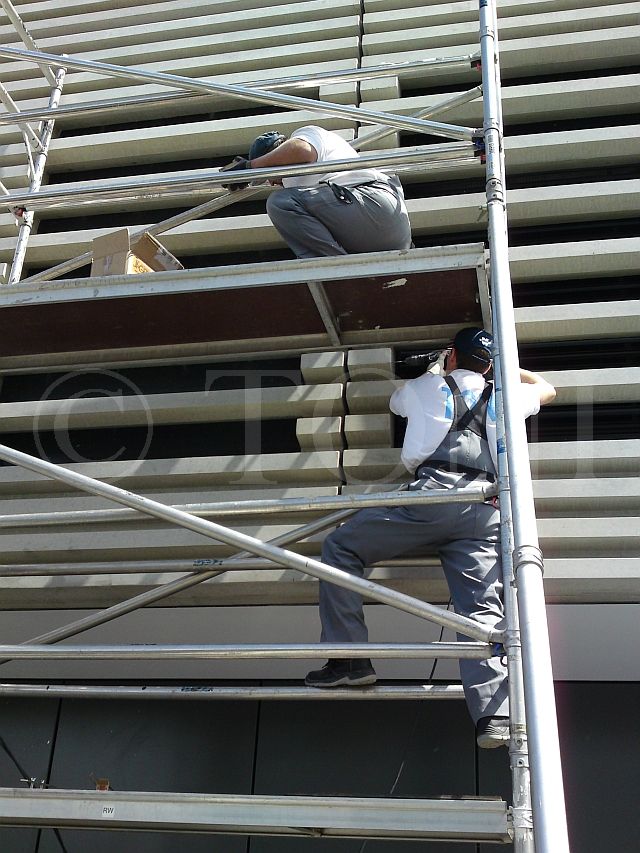 Large inner courtyards can be gateways for pigeons. The installation of large netting is not easy in these cases. Scaffolding must be removed first – if the netting is already hanging, it is no longer possible. How can the netting be fixed?