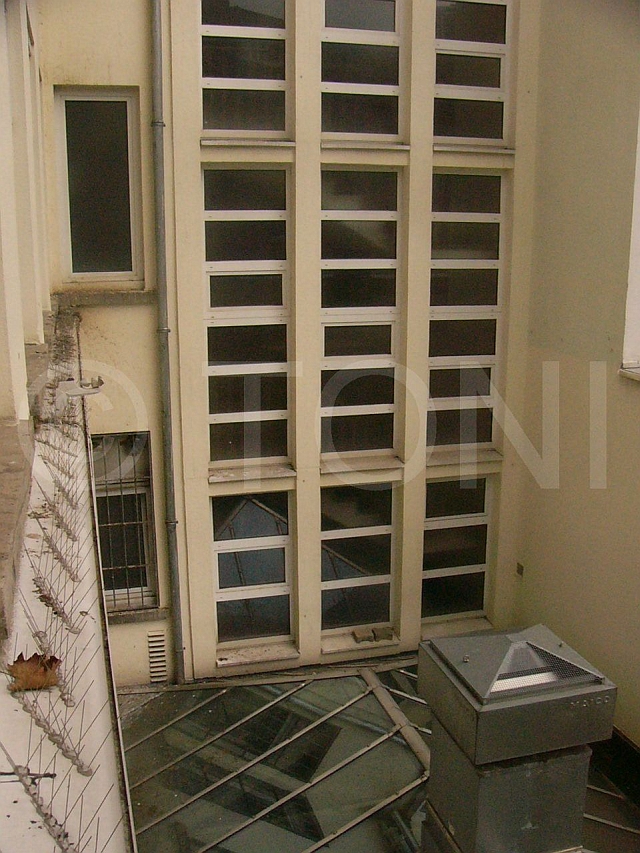 This inner courtyard of this new housing was protected with an electrical system against pigeons. The system is installed in the front attic in an area that is not easy to reach. Therefore, the occupants, children etc cannot reach the system and frighten themselves.