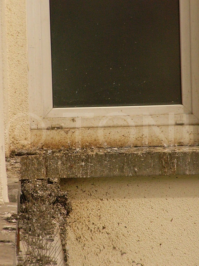 The concrete segments of this suspended facade provided pigeons with many roosting possibilities. As a result the facade and in particular the window sills were soiled by pigeons, some even brooding.