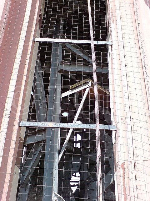 Our industrial climbing team cleaned the pigeon droppings and disinfected. The sides of the bell tower were then netted. The pigeons could no longer get into the bell tower; this meant predators were no longer attracted to the flocks.