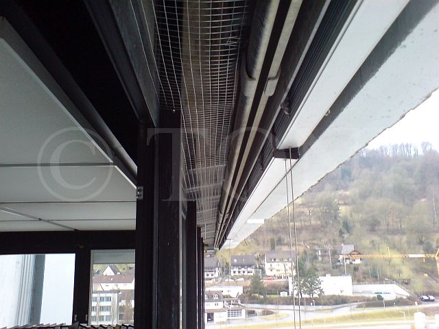 We installed netting using cable frame technology in the inner courtyard of a bank in Frankfurt. Pigeon dropping also had to be removed and disinfection carried out.