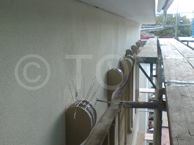 We have protected the ornaments with a netting of the upper part. The cross-bracings above that window had many pigeons too. There we have used a special pipe clamp wire system.