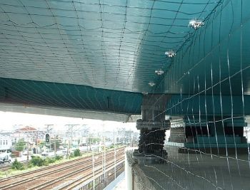 • Ultralight PE netting, only weighing 12g pro square metre, is hung on plastic support brackets. The brackets are attached to the concrete or steel structure using high performance adhesive.