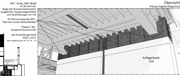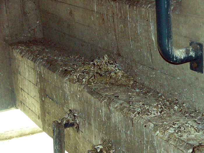 The undersides of bridges offer pigeons excellent nesting and breeding. They are wind-protected and the birds are not disturbed here.The acid in bird droppings badly damages concrete. The reinforcing, which is only a few centimetres below the surface, can rapidly become exposed and corrode. Bird control should be taken into consideration when planning long-term maintenance.