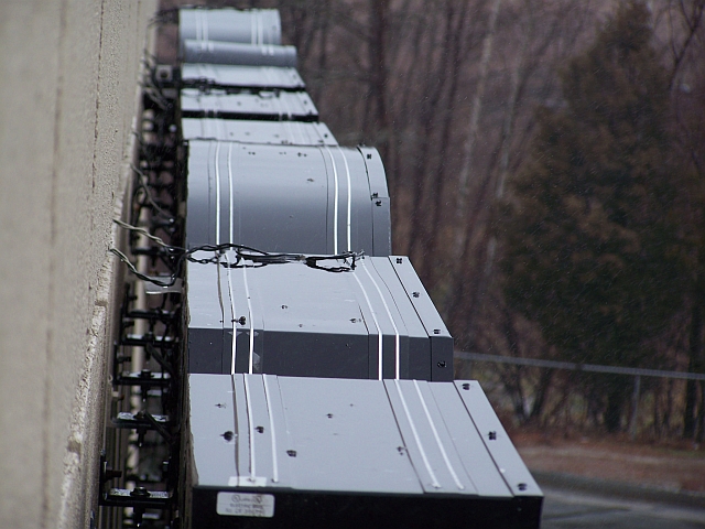 Installing scaretape on this row of windows is easy and effective. A solar panel feeds in electricity.