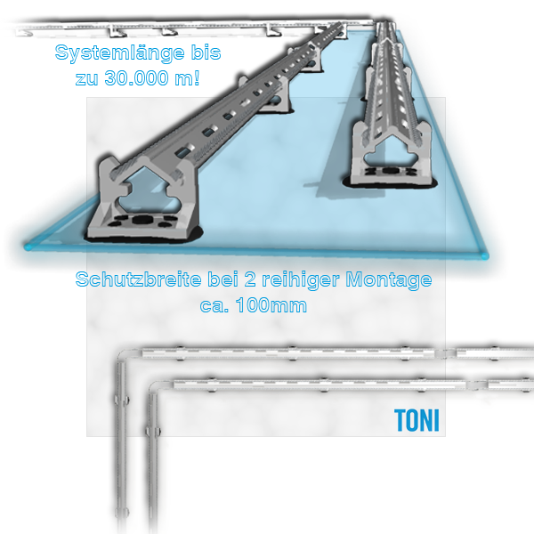 Flexible and robust plastic profile with two conductor tracks. It is UV- and weather resistant. The roof-shaped concept ensures water drainage and prevents short-circuiting.