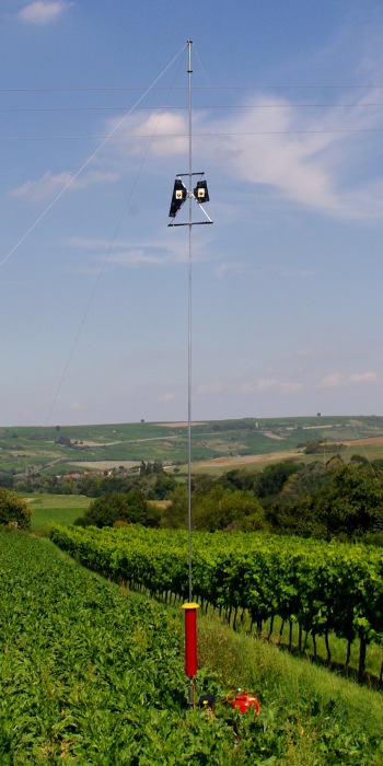 The vertical cannon shoots a flutter or bird-of-prey dummy along a vertical antenna. Gravity then returns the dummy.