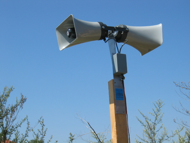 The R56 is an extremely powerful device with a high power amplifier and two large horn speakers. The loudspeakers can be set at any desired angle. The construction is very robust with sealed aluminium casing for the electronic components. Due to the volume level, this model should not be used near residential areas. The high power of the device naturally indicates higher energy consumption, and the automatically operated R56 is therefore equipped with 6W or 20W solar power capability. This charges the 12V battery and significantly reduces the recharging burden.The R56 can also be delivered in various configurations. Please enquire about this possibility.