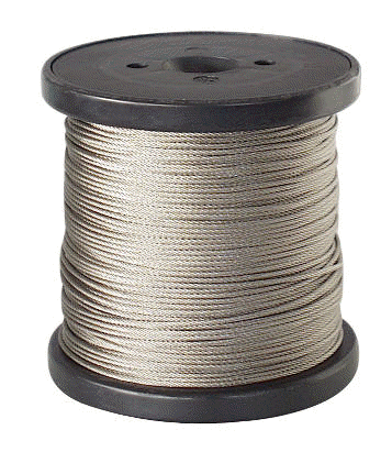 Stainless steel cable in various diameters and lengths. It is used for the cable frame construction with PE netting.Very stable as it consists of 49 wires which are wound 7 x 7 (see photo 2).