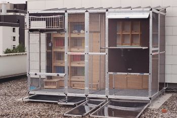 - Additional small cages with food and pigeons in them, will be placed in the area. When wild pigeons are captured in them, they will be permanently released into the large dovecote. This way, the wild pigeons in a larger area learn about the dovecote, increasing the efficiency of the dovecote in the whole area. This method of pigeon resettlement is patented.
